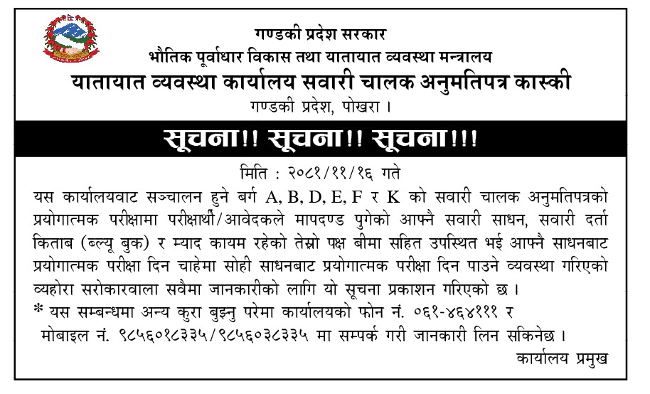 © सर्वाधिकार सुरक्षित यातायात व्यवस्था कार्यालय, सवारी चालक अनुमती पत्र, कास्की