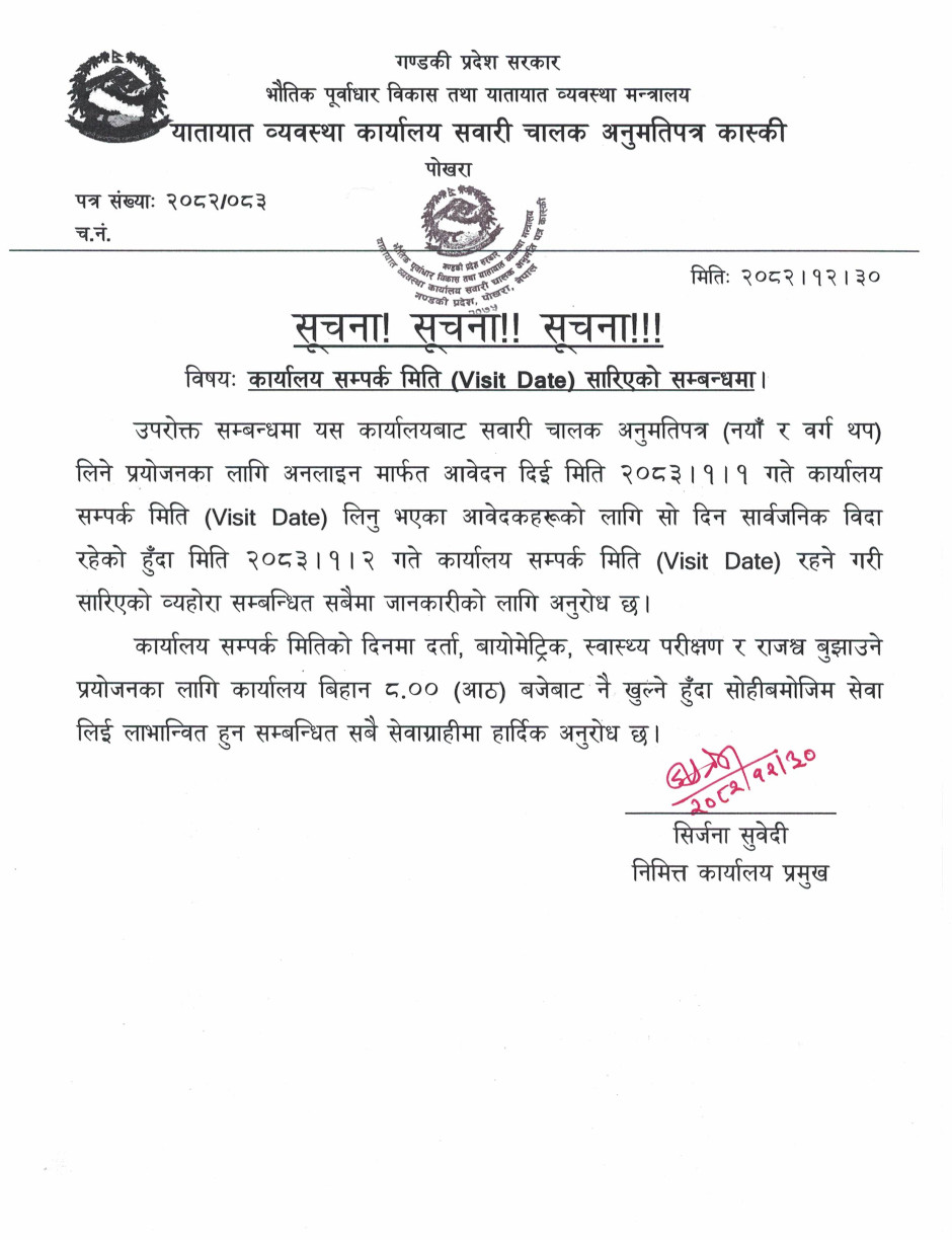 © सर्वाधिकार सुरक्षित यातायात व्यवस्था कार्यालय, सवारी चालक अनुमती पत्र, कास्की