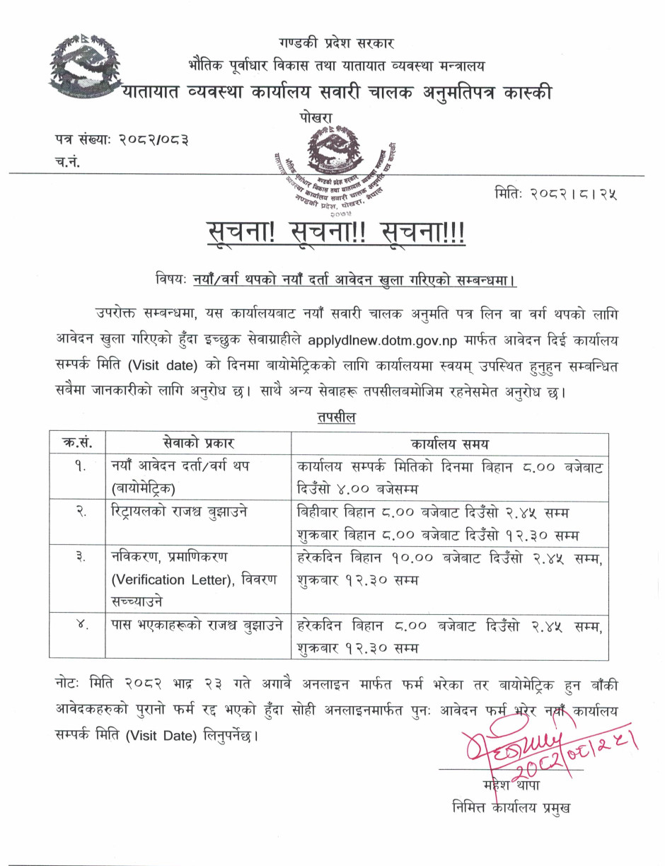 © सर्वाधिकार सुरक्षित यातायात व्यवस्था कार्यालय, सवारी चालक अनुमती पत्र, कास्की