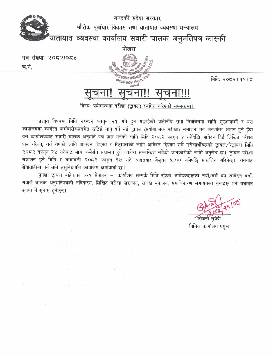 © सर्वाधिकार सुरक्षित यातायात व्यवस्था कार्यालय, सवारी चालक अनुमती पत्र, कास्की