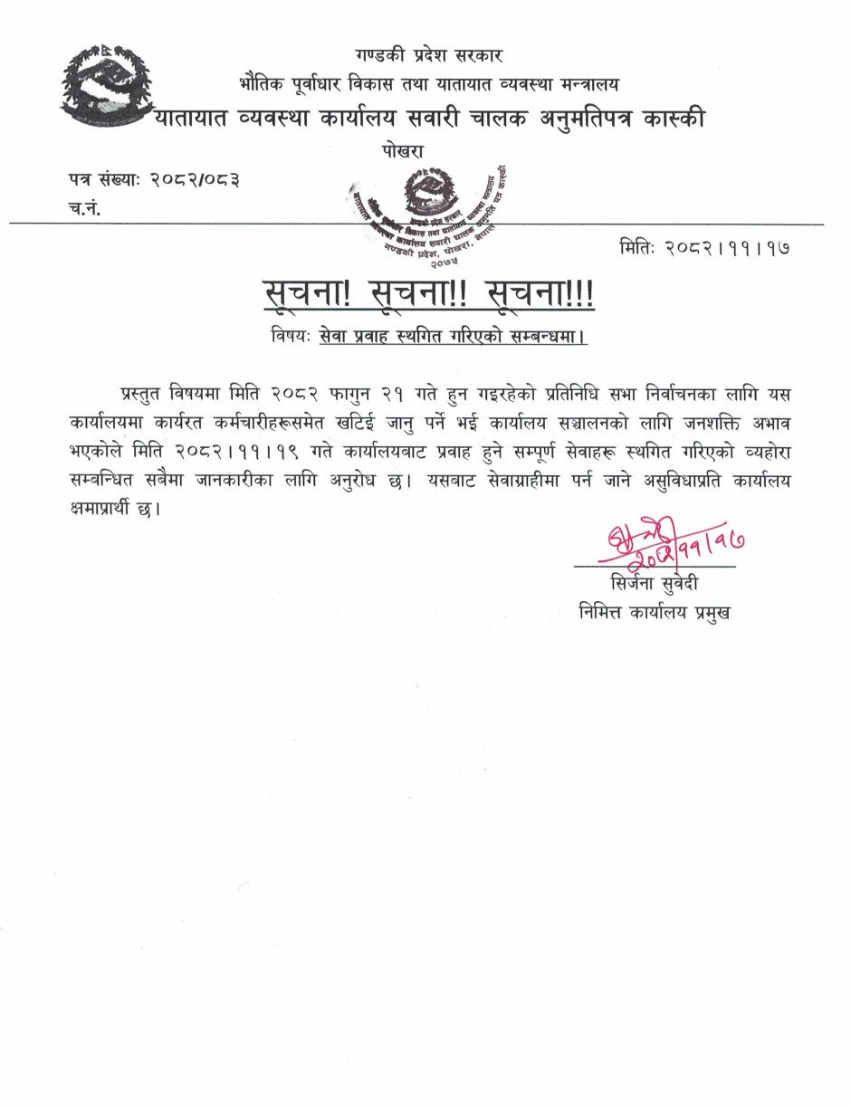 © सर्वाधिकार सुरक्षित यातायात व्यवस्था कार्यालय, सवारी चालक अनुमती पत्र, कास्की