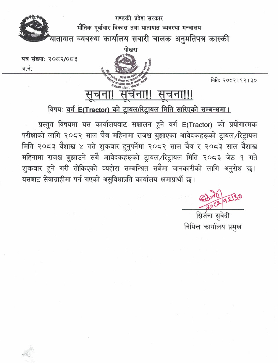 © सर्वाधिकार सुरक्षित यातायात व्यवस्था कार्यालय, सवारी चालक अनुमती पत्र, कास्की